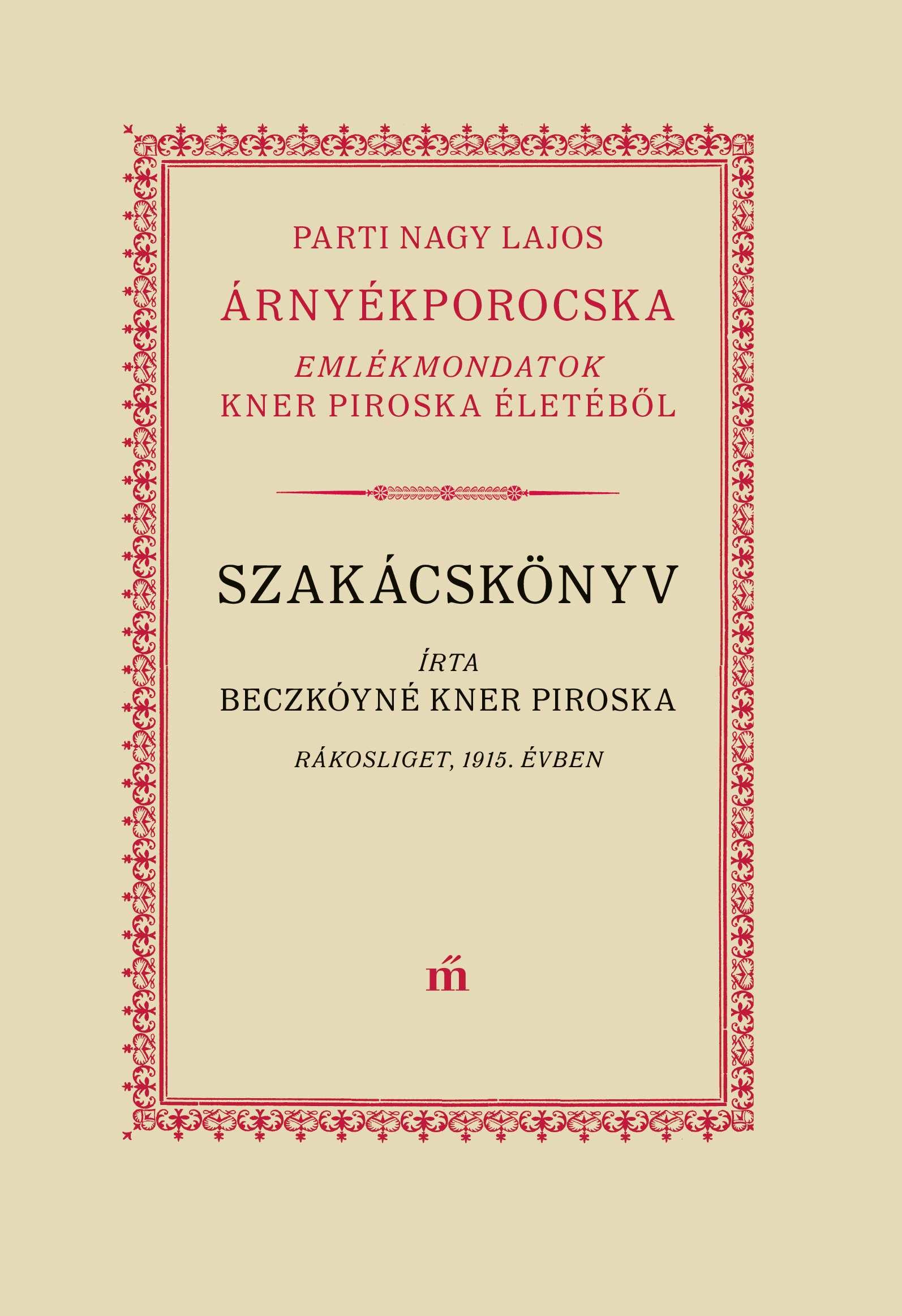 Kner Piroska a Gyomai Kner Nyomda alapítójának, Kner Izidornak volt a legfiatalabb húga. 1877-ben született Gyomán, élete nagyobb részében háziasszonyként élt Rákosligeten. 1915-ben, a kor divatjának megfelelően, ő is írt egy szakácskönyvet, ám hiába remélte, hogy a családi kiadónál megjelenik, valahogy mindig hátrébb sorolódott az ő könyve. Az első világháború és az azt követő válságos időszak aztán végképp elsodorta, hisz addigra a spórolós szakácskönyvek ideje jött el. Kner Piroska kézirata a rákosligeti ház padlására került sok más holmival együtt, míg évtizedekkel később a ház új tulajdonosa ráakadt. A gyomai Határ Győző Városi Könyvtár és a Magvető közös vállalkozásában most végre megjelenik az annak idején gondosan összeállított szakácskönyv, amely ma is tökéletesen használható, a levesektől vezet végig a desszertekig és a befőzésig. Hogy igazságot szolgáltassunk Kner Piroskának, Parti Nagy Lajos egy kísérő könyvben idézi meg élete fontosabb mozzanatait a családi levelezés és más dokumentumok alapján. Az emlékmondatok varázslatos bepillantást adnak az ismeretlenség homályából éppcsak kiemelkedő nőalak és családja, a nagy múltú nyomdász- és művészdinasztia küzdelmes sorsába.A két könyvet Kner Antikva betűkből, Kozma Lajos díszítőelemeit felhasználva tervezte Pintér József, és a Gyomai Kner Nyomda nyomtatja, ahogy annak idején történhetett volna.