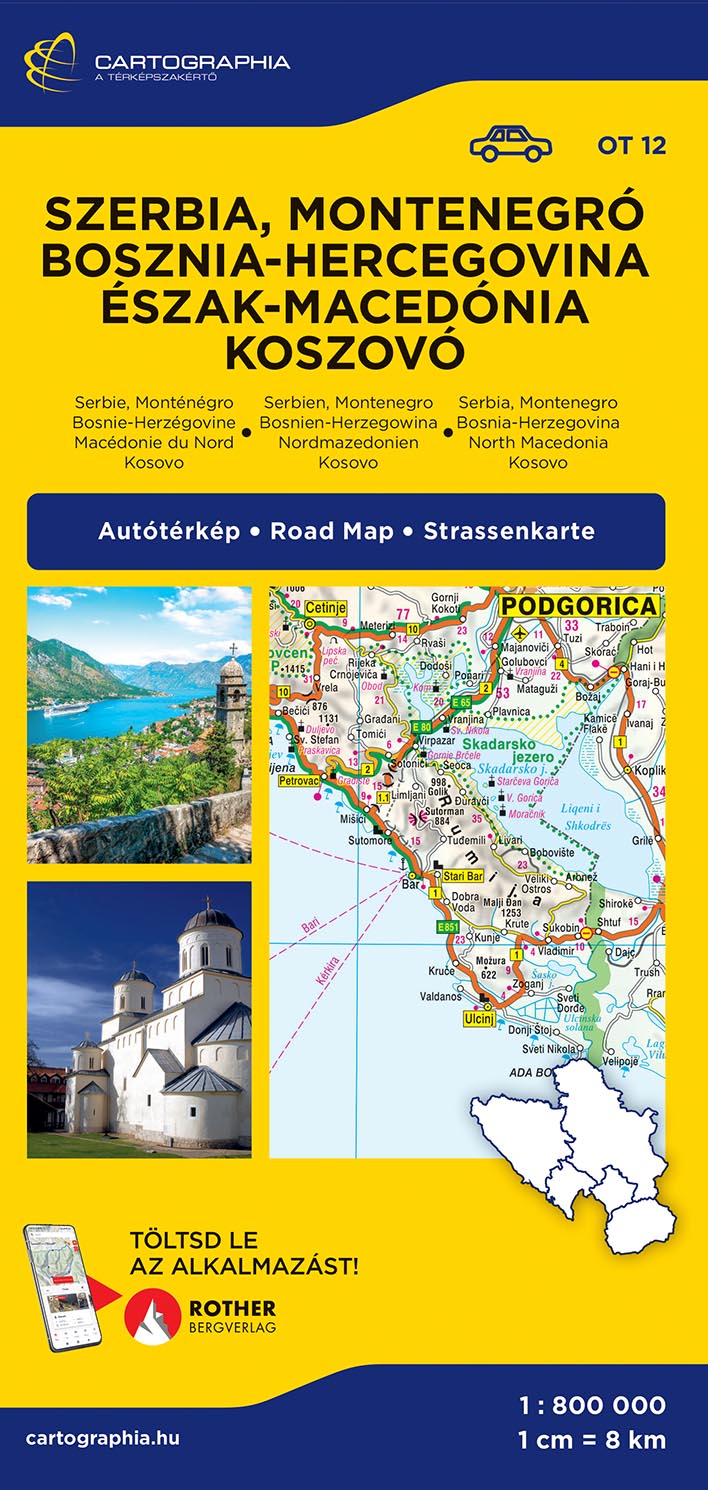 Az új kiadású, keményborítós 1:800000 méretarányú Szerbia, Montenegró autótérkép nélkülözhetetlen az útvonaltervezéshez, autózáshoz.Változások az aktualizált Szerbia, Montenegró autótérképen:új autópályák és gyorsforgalmi utak jelöléseelkerülő utak frissítéseHorvátország határátkelőinek törlése a régi schengeni tagországok feléVilágörökség látnivalók frissítéseTovábbi tartalom:-Belgrád belvárosának térképe-idegenforgalmi nevezetességek, természeti látnivalók-nemzeti parkok, kempingek, gyógyfürdők-vasútvonalak-névmutató